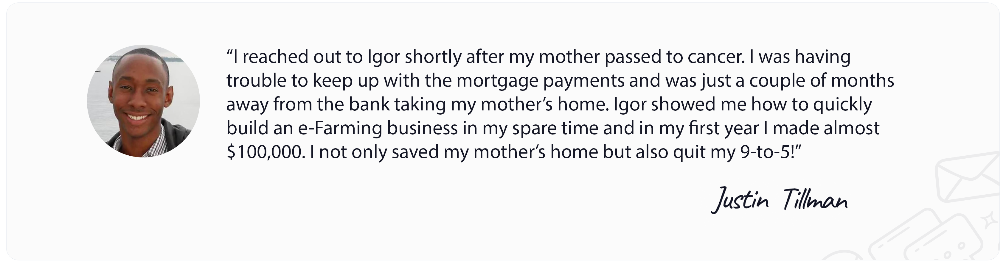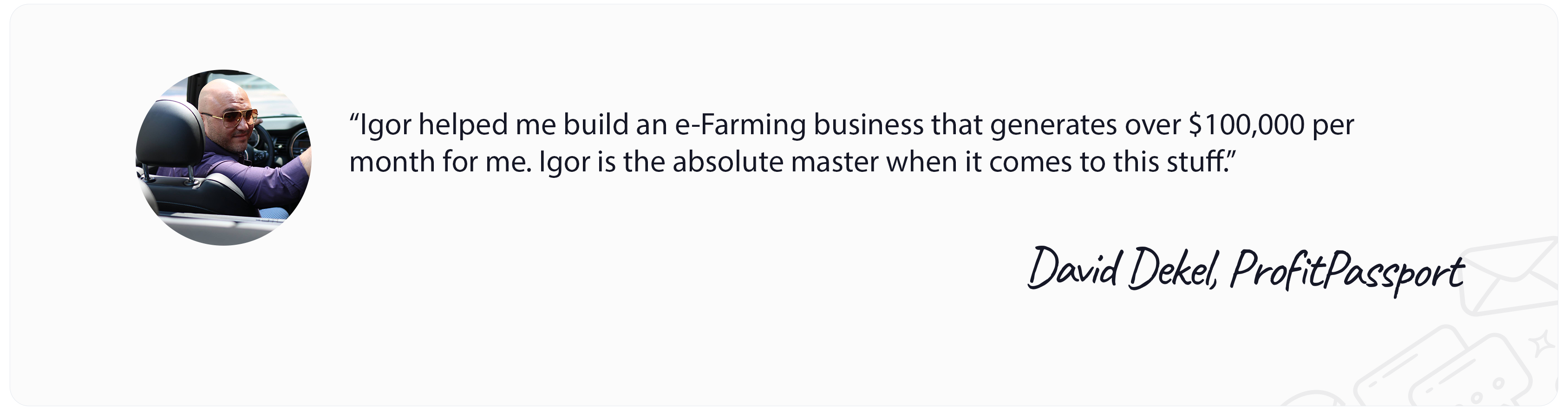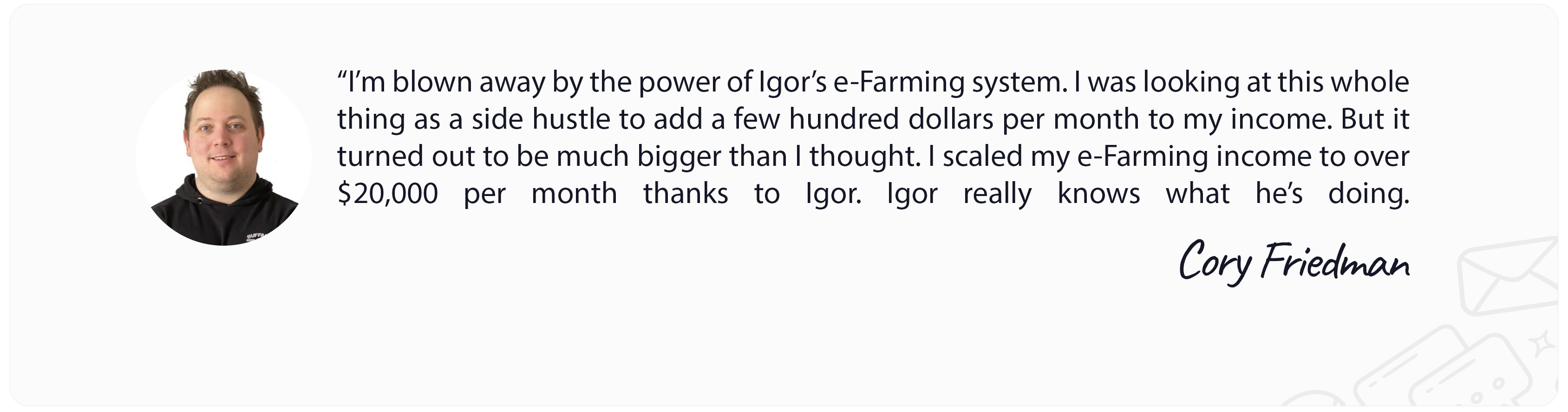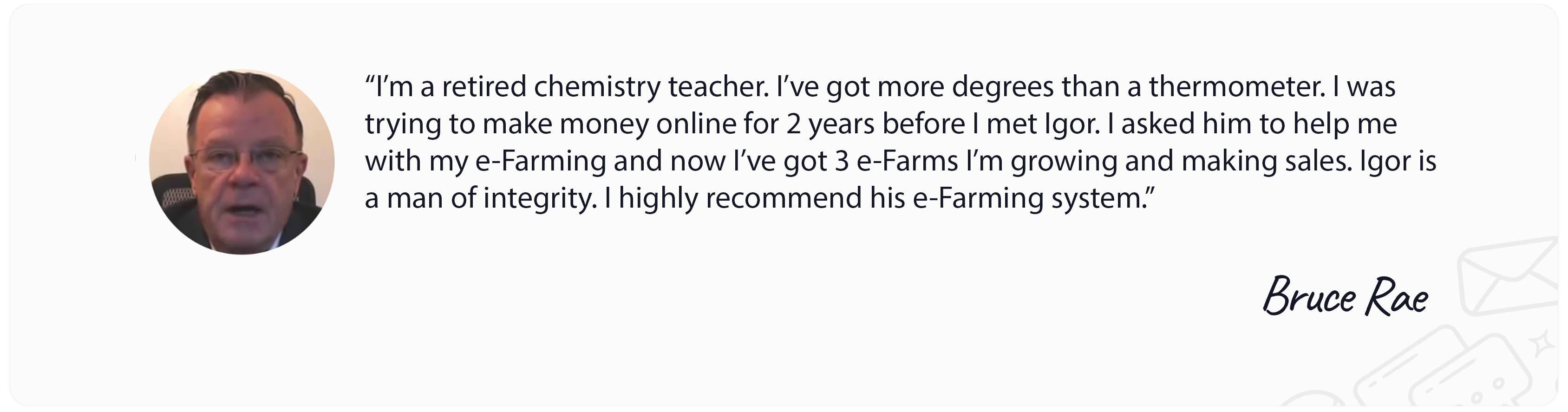 Igor has already helped thousands kickstart their own profitable e-Farming online business through his best-selling program The 30-Day e-Farming Challenge.