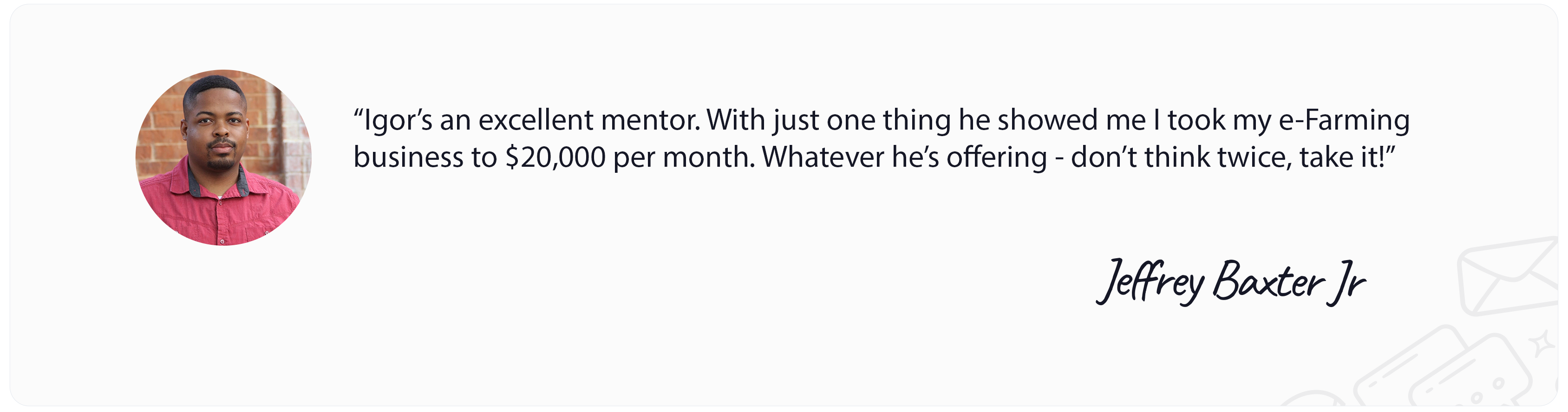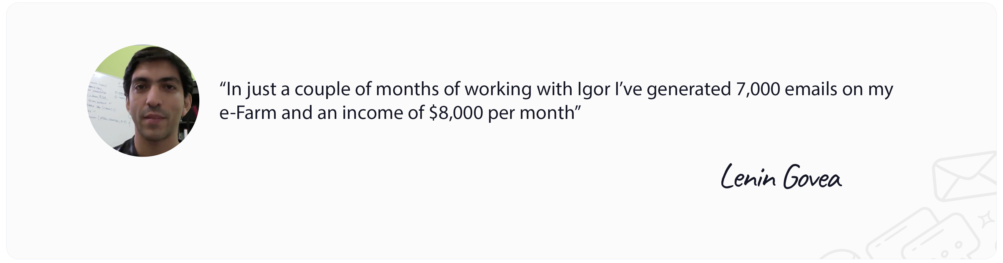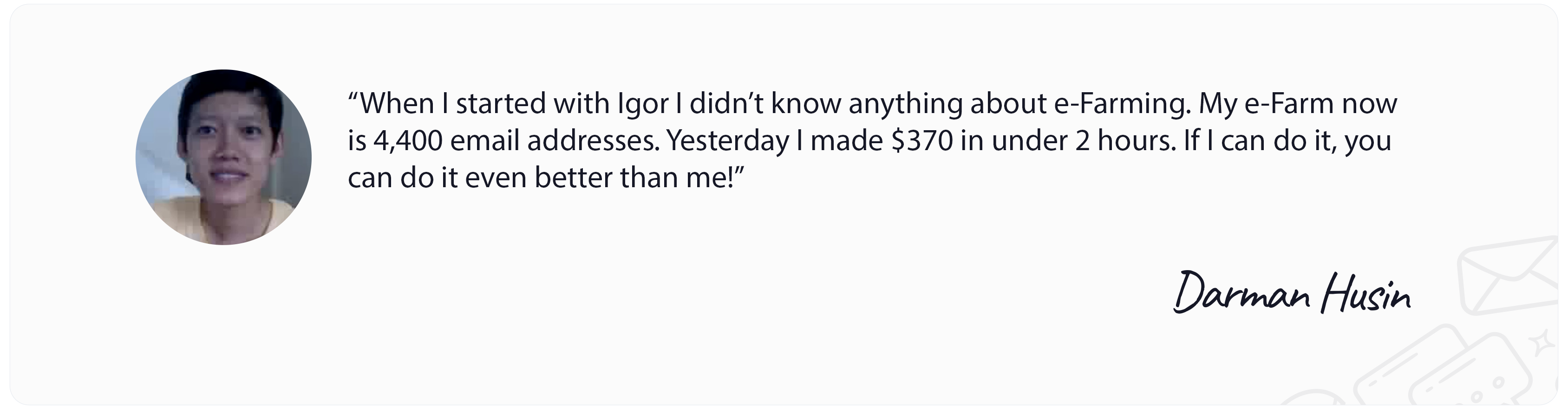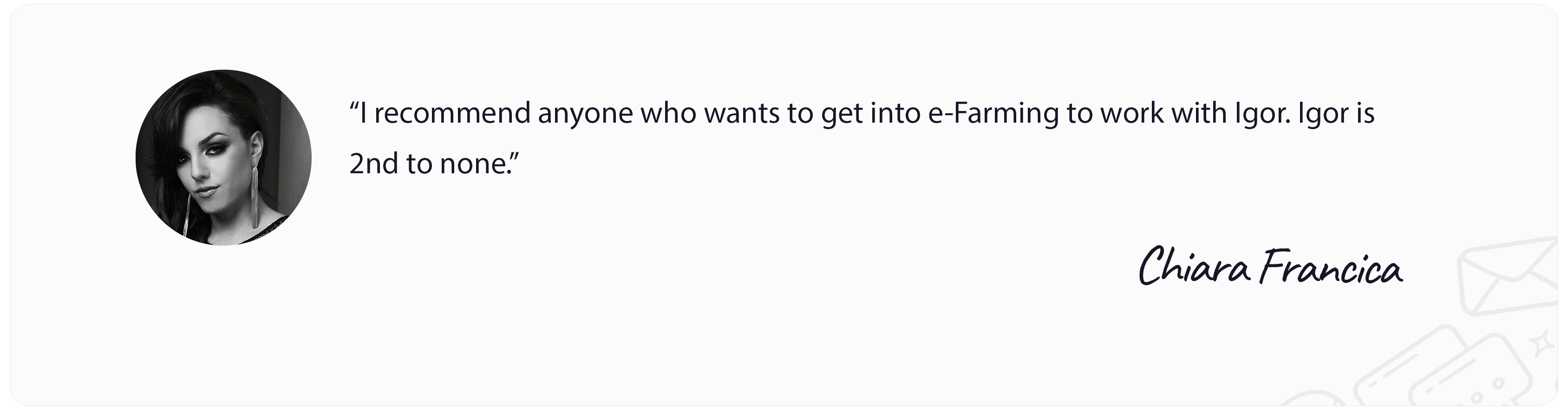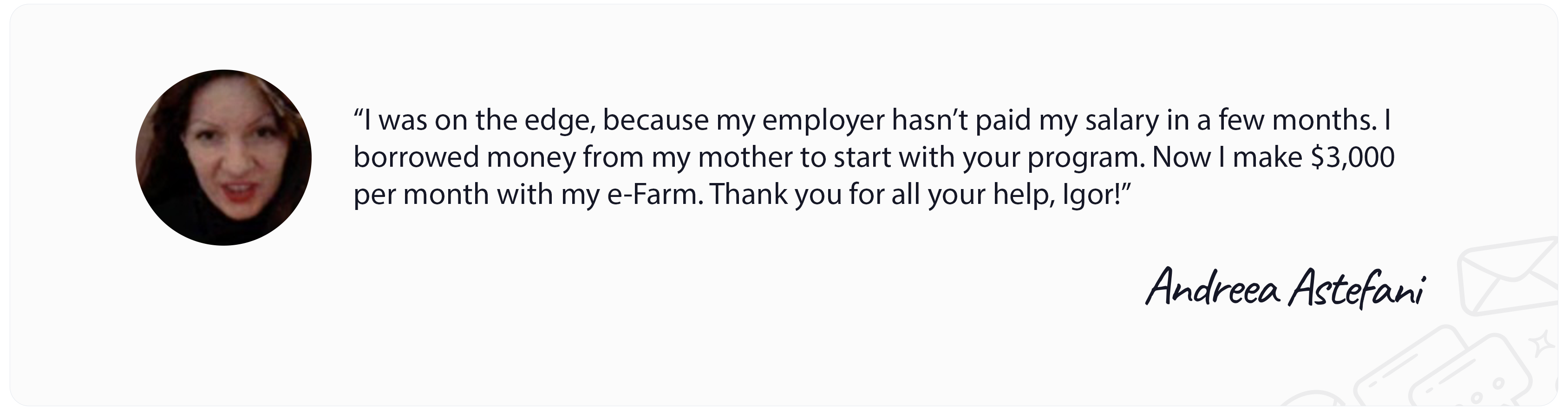 Igor has already helped thousands kickstart their own profitable e-Farming online business through his best-selling program The 30-Day e-Farming Challenge.