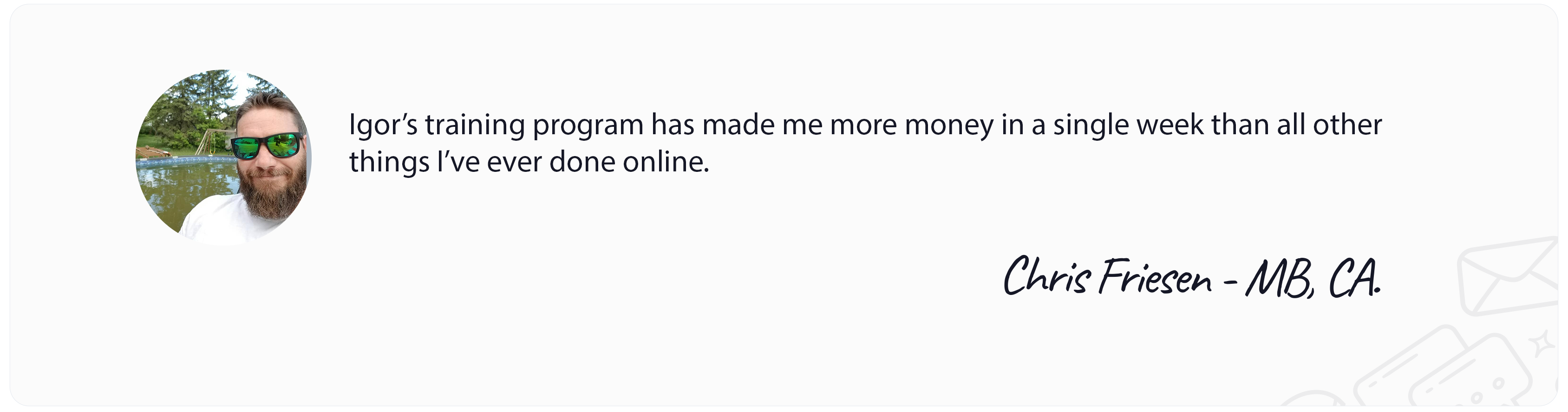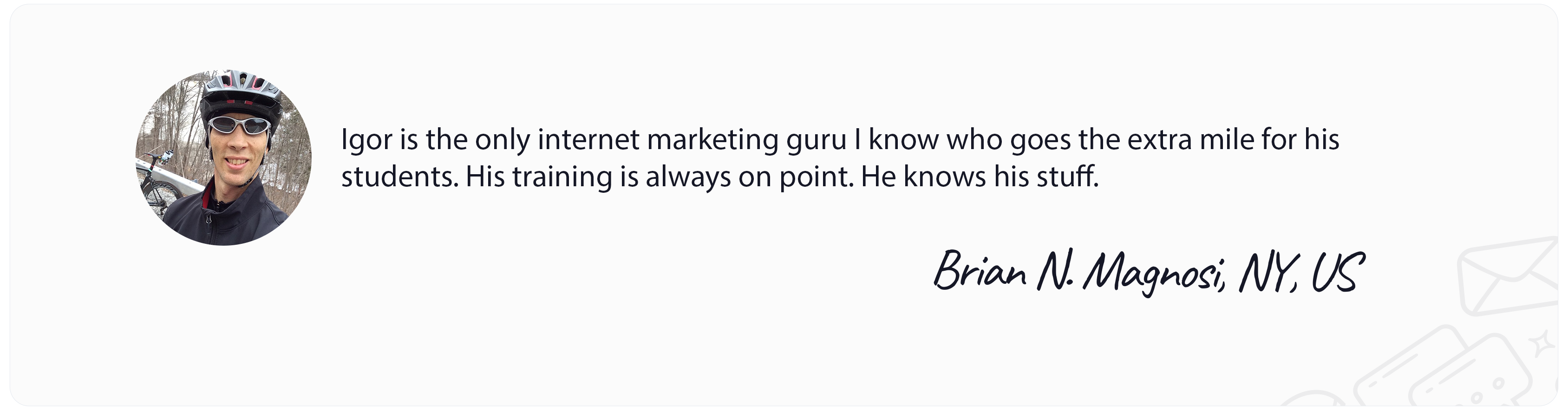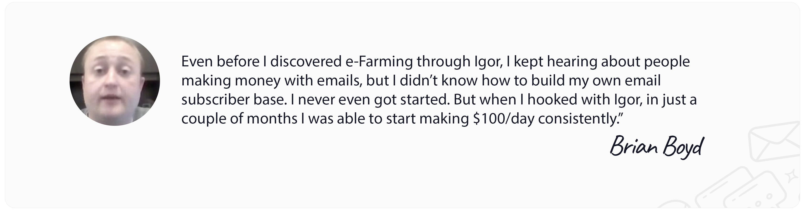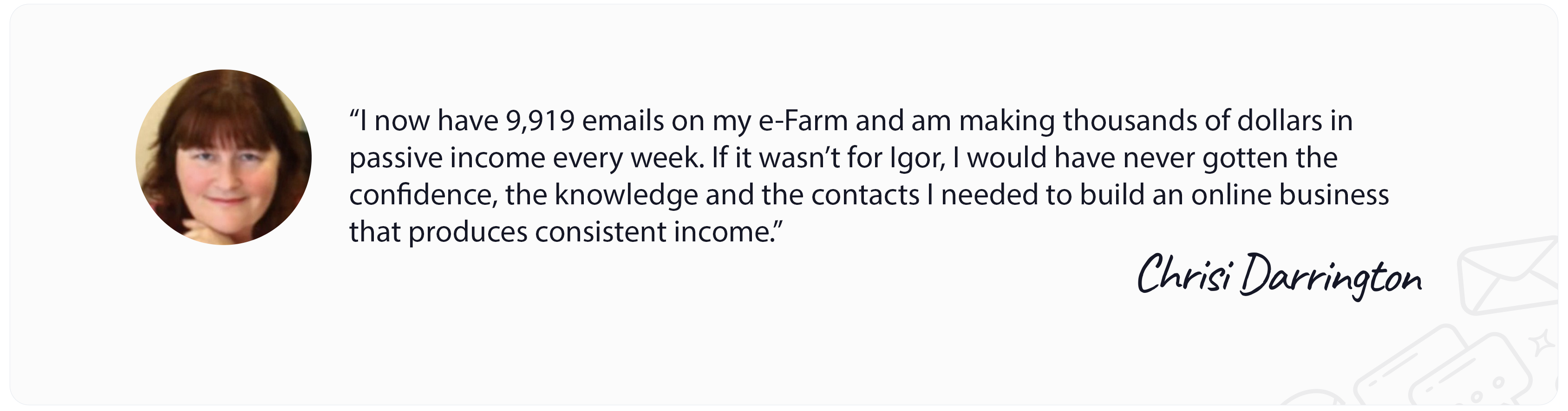 Igor has already helped thousands kickstart their own profitable e-Farming online business through his best-selling program The 30-Day e-Farming Challenge.